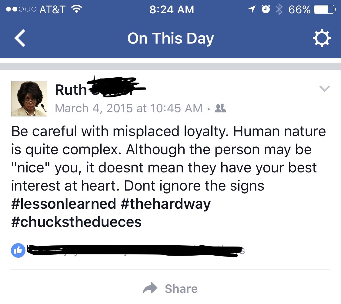 I was scrolling through my “On this Day” feature on fb and ran across a similar status update to this post. Life is cyclical if ya let it be, guess Im still learning