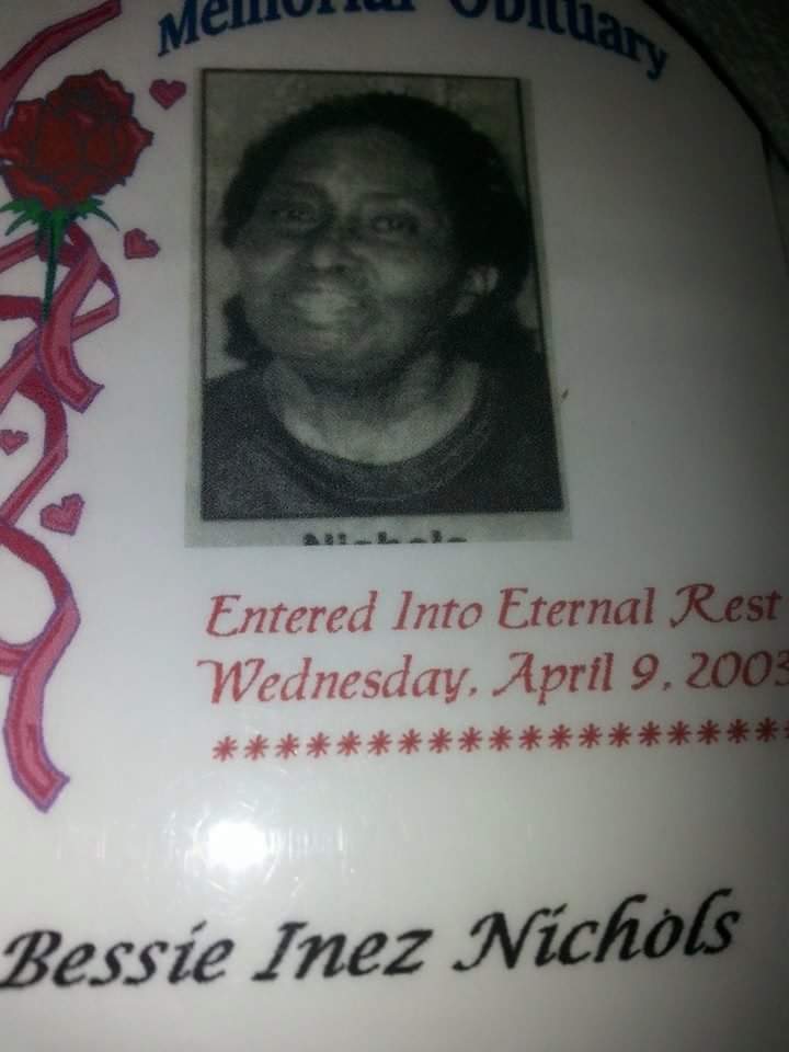 I lost my Grandma the same year I lost my Granny. Their deaths were six months apart in 2003. Bessie Inez Nichols was a force to be reckoned with. I tell you Bessie had no filter. Her children and her grands knew this and understood the repercussions of pushing the wrong buttons. My grandma is my no nonsense part of my personality. I try to keep that part in check because I can end up saying some things that would hurt your feelings.